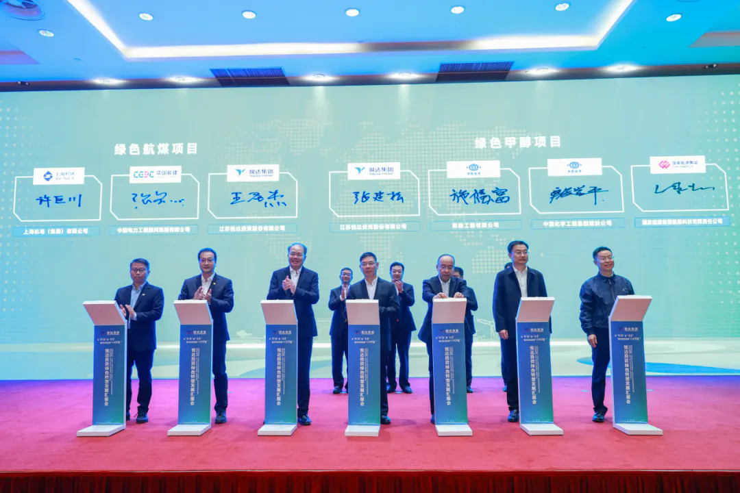 活动现场,悦达投资与中国化学、中电工程、国家能源等12家央国企及行业头部企业、研究院进行了集中签约。本次共签约8个项目,涉及绿色航煤、绿色甲醇、新型综合能碳、风光电及氢氨醇一体化、钢渣高值利用、生物质能源高值化利用与海水制氢、液态空气储能LNG冷能利用、电动农机装备创新中心建设等多个领域,科技含量高、市场前景好、发展后劲足,将为公司产业转型发展注入强劲动能。同时,更大力度促进企业与科研机构密切合作,实现产学研融通创新。